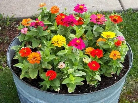 | Zinnias (State Fair) | 8-10 inch pots | 50-70 days | Every 6 weeks | Giant blooms; cut flowers |